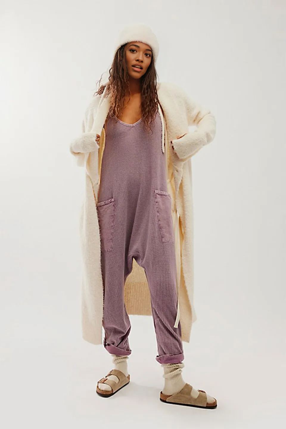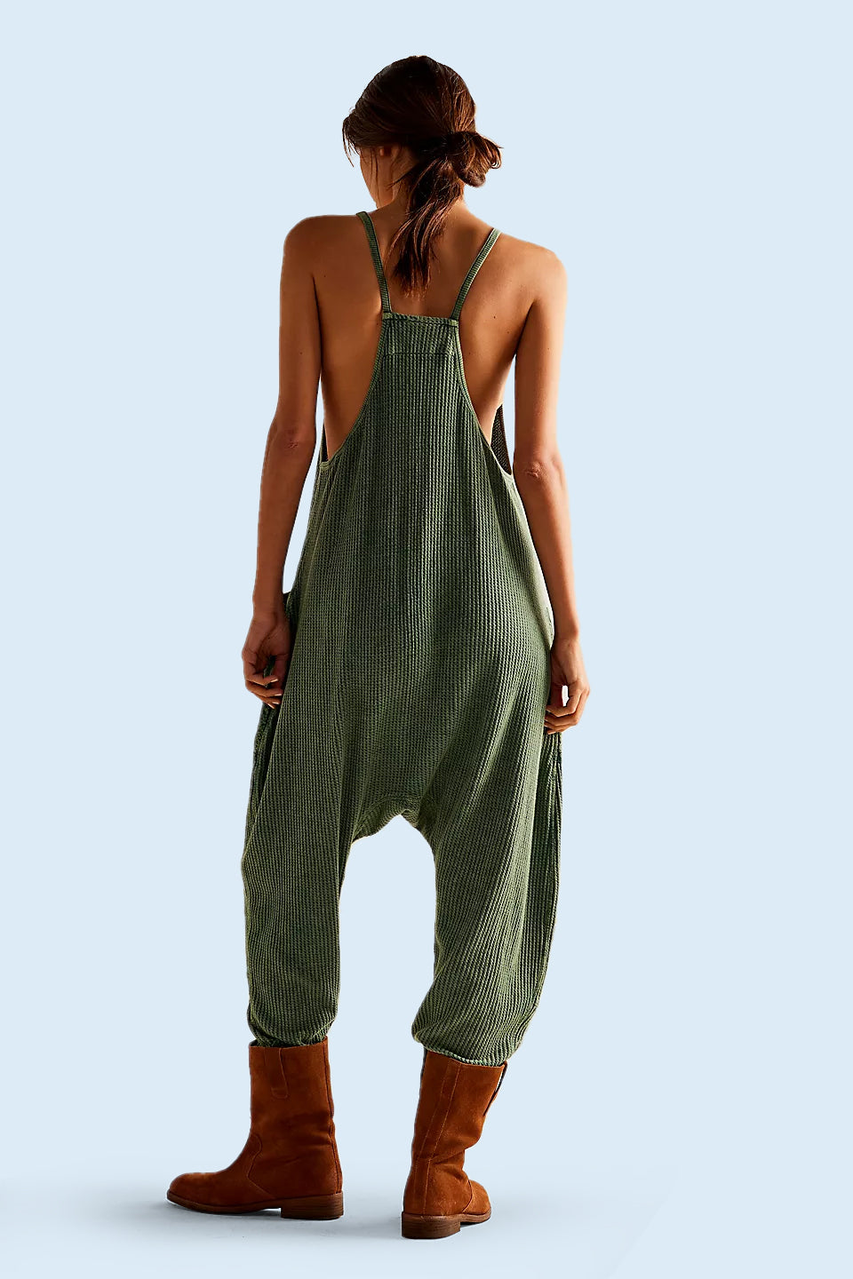 Oversize Waffle Knit Jumpsuit With Pockets, Wear it alone or layered over your favorite tee or layering top for an effortless look! This jumpsuit is made from a blend of cotton and polyester. It's comfortable and durable, soft against the skin and withstands daily wear and washing.