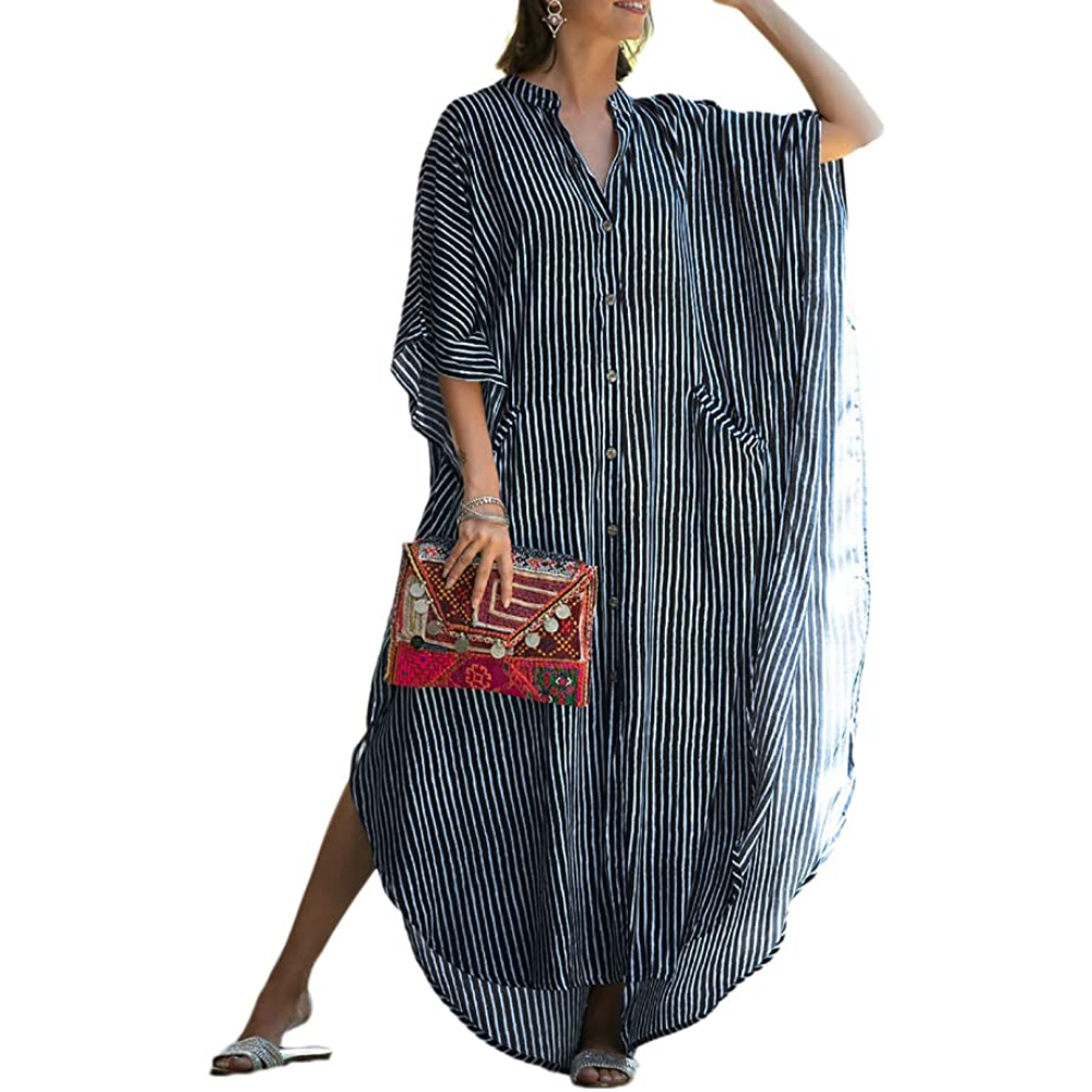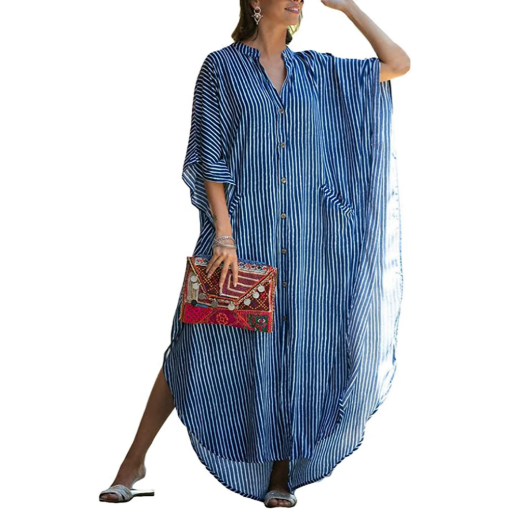 This Women Beach Loose Shirt is the perfect addition to your beach wardrobe! Made from lightweight, breathable fabric, this shirt is sure to keep you cool and comfortable all day long. The loose fit is flattering and allows for effortless layering. The classic design features a collared neckline, roll-up sleeves, and two chest pocket details for a timeless look. The bright colors and vibrant prints will add a bit of fun to your beach days and be a great conversation starter! With its versatility and comfortable fit, this Women's Beach Loose Shirt is sure to be your new favorite piece.