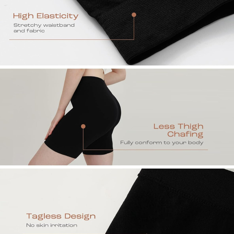 • Design: High-waisted, mid-thigh length, smooth fabric.