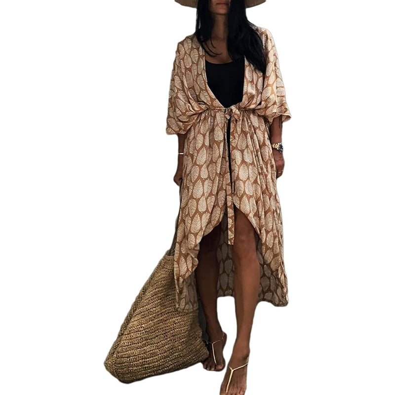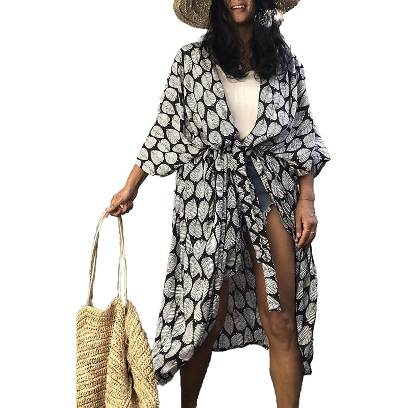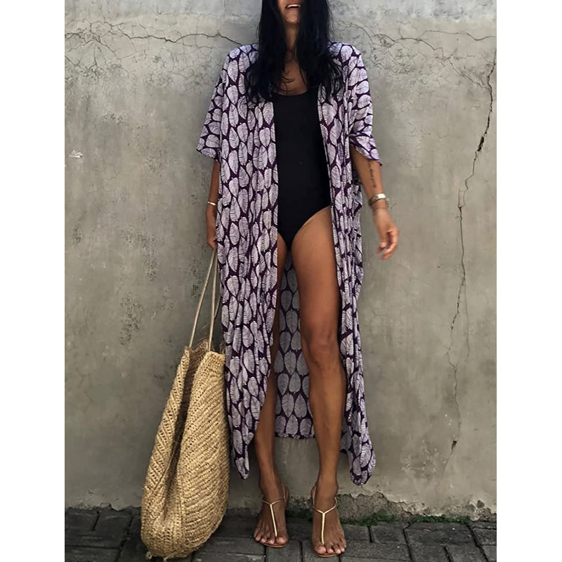 Women's Open Front Long Kimono Swimsuit Cover Up