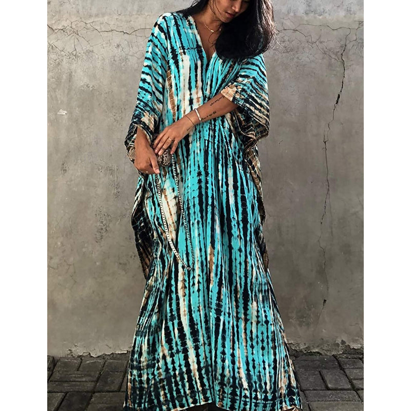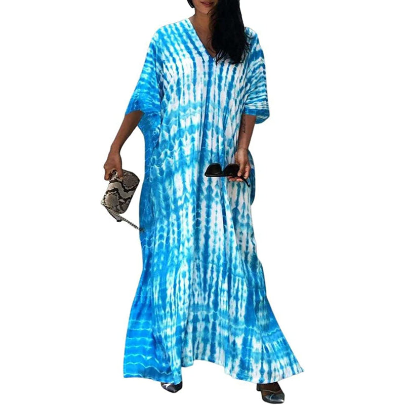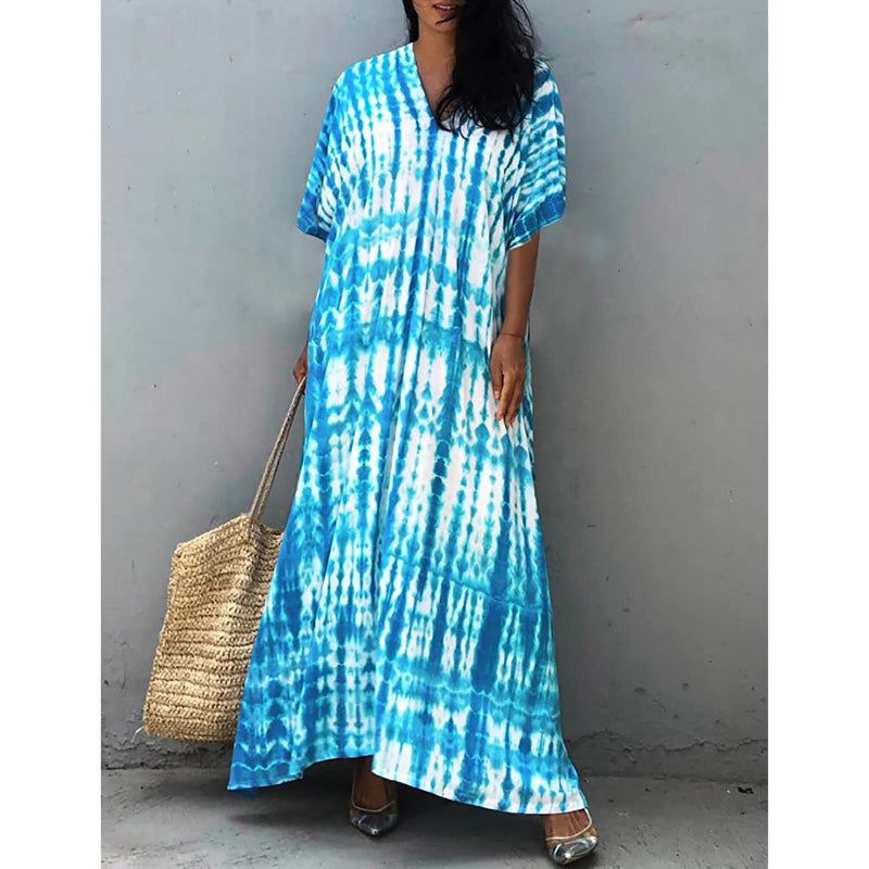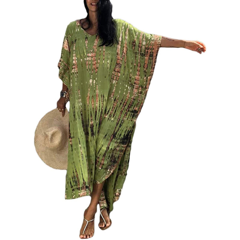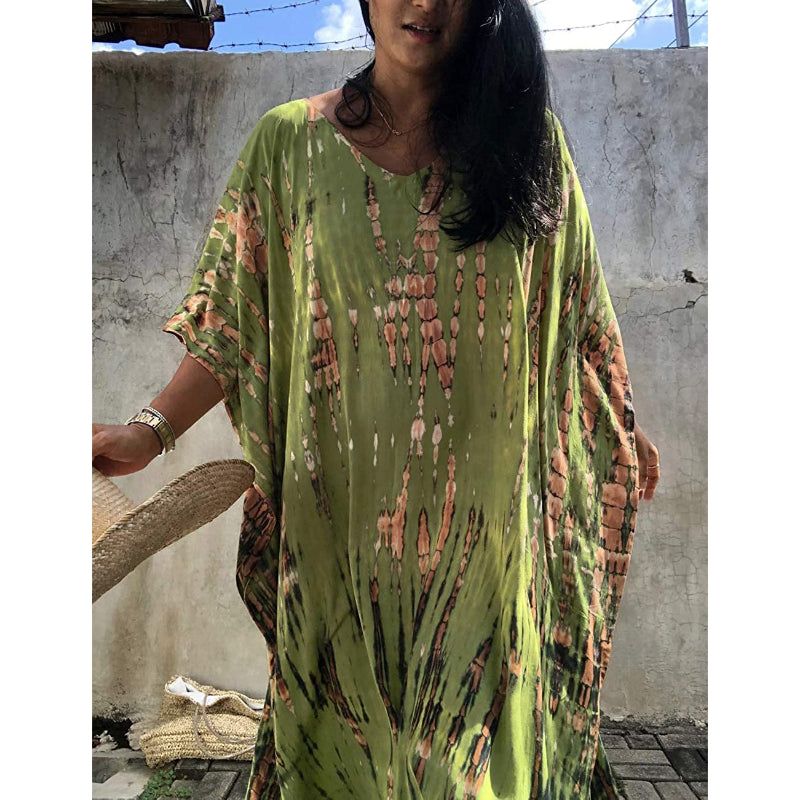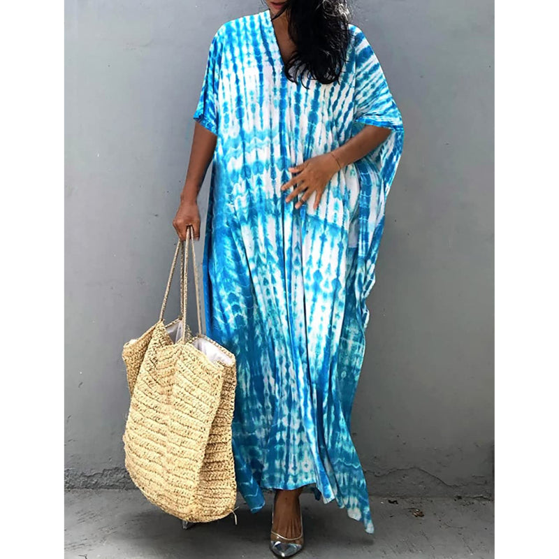 Women's Printed Short Sleeve Kaftan Cover Up Dress For Beach Suits