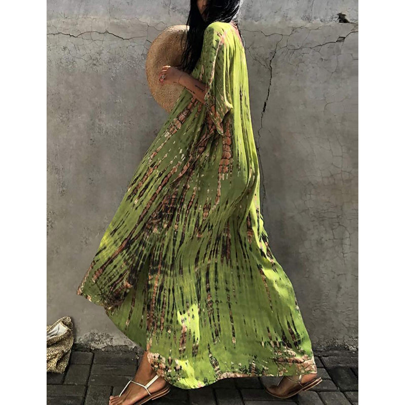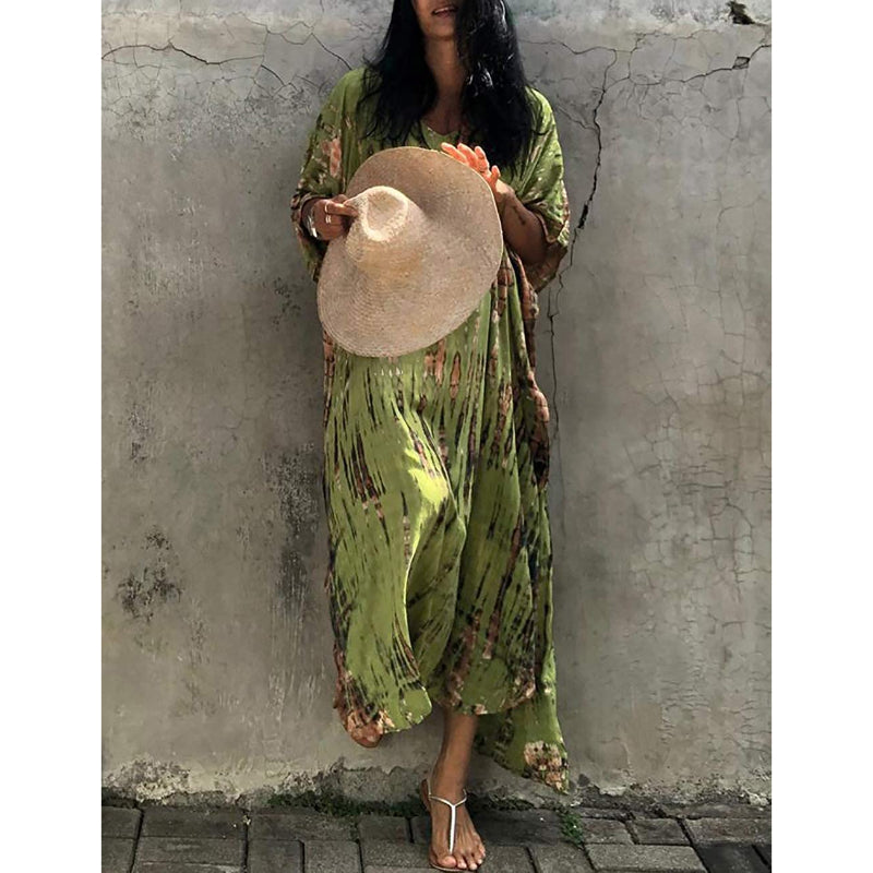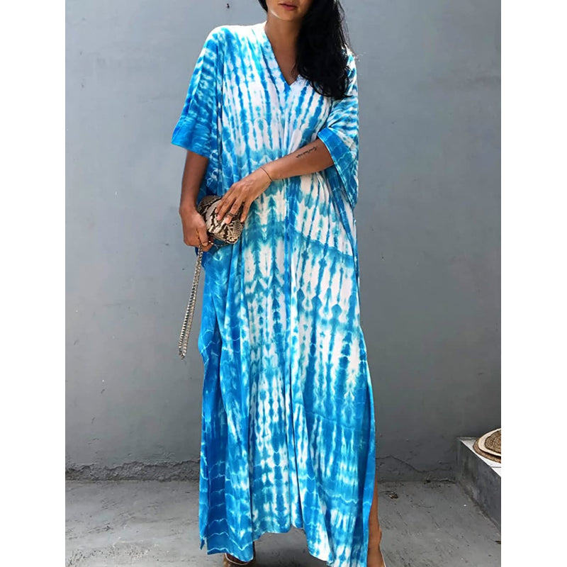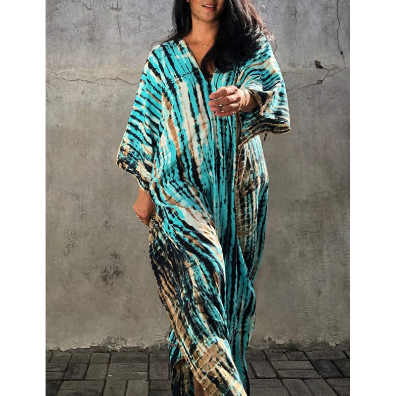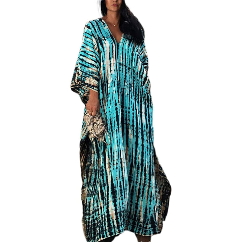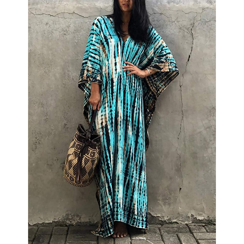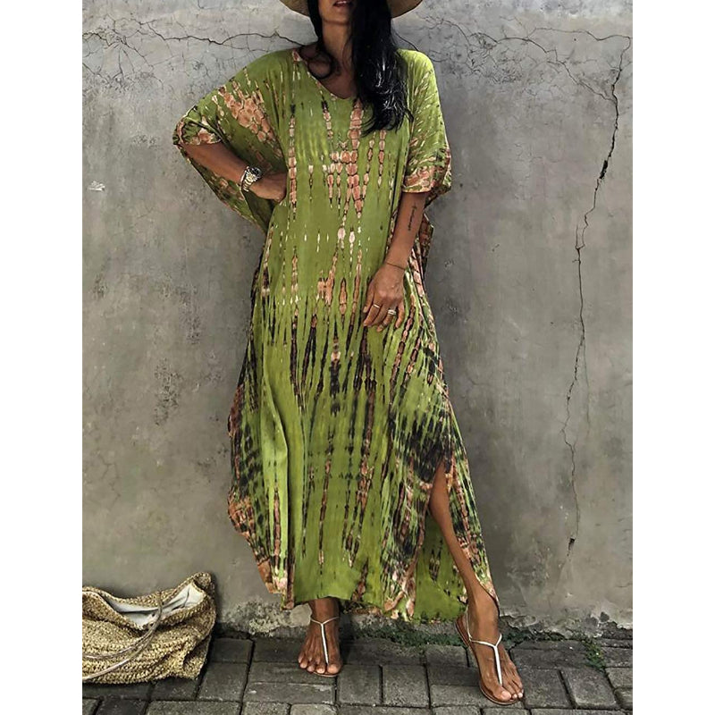 Women's Printed Short Sleeve Kaftan Cover Up Dress For Beach Suits
